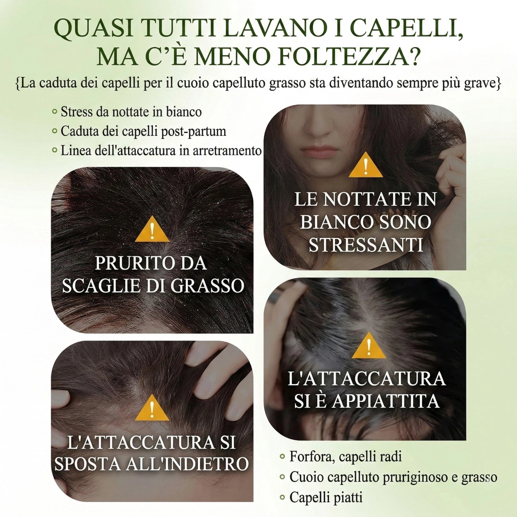 - Azione Anti-Caduta: Rinforza il bulbo pilifero alla radice.